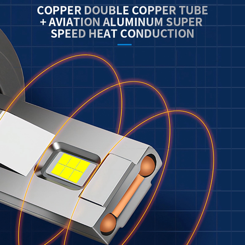 We understand the importance of heat management for LED headlights. To address this concern, our SK80 Series incorporates a smart silent fan, copper double tube, and aviation aluminum materials. These components work together to efficiently dissipate heat, preventing damage to the LED components and ensuring long-lasting performance. This innovative heat conduction design guarantees optimal operating temperatures, enabling our headlights to withstand extended periods of use.