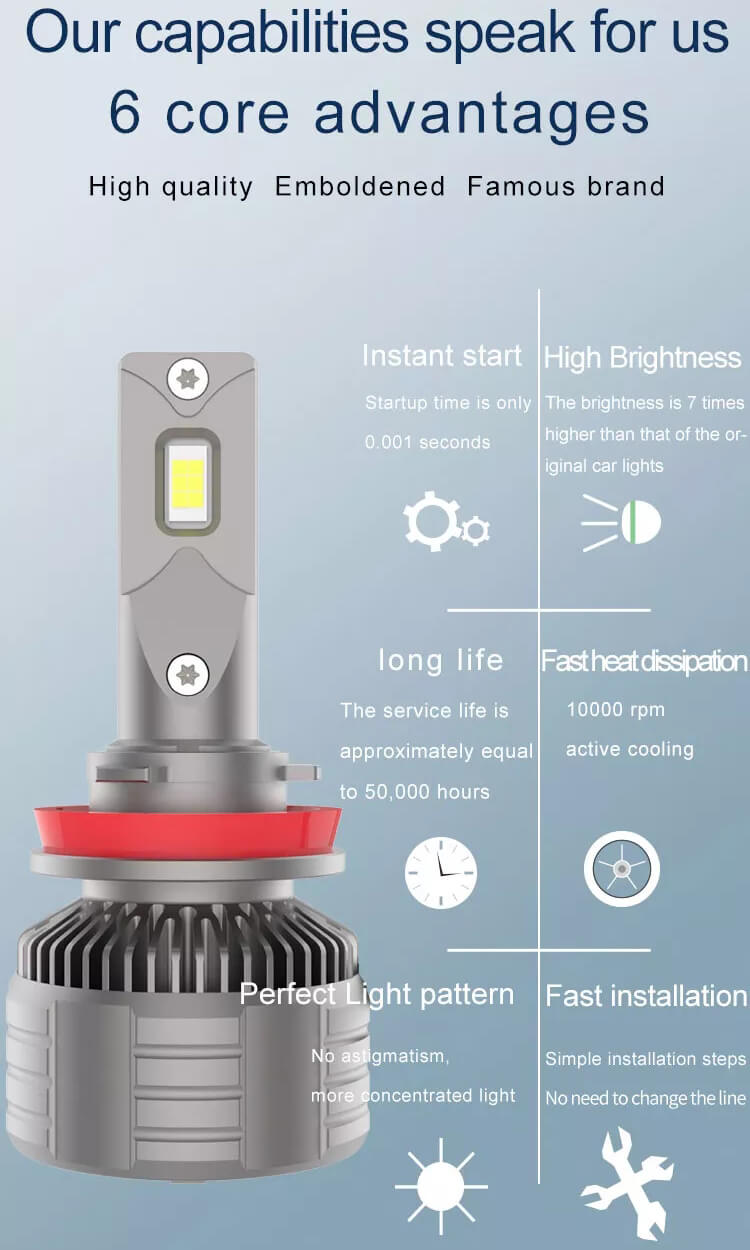 SK TECH has made SKP5 9005 with an all-in-one compact design that will take fewer minutes to install in the car light housing. Reduce manual labor with our SKP5 9005 headlights.