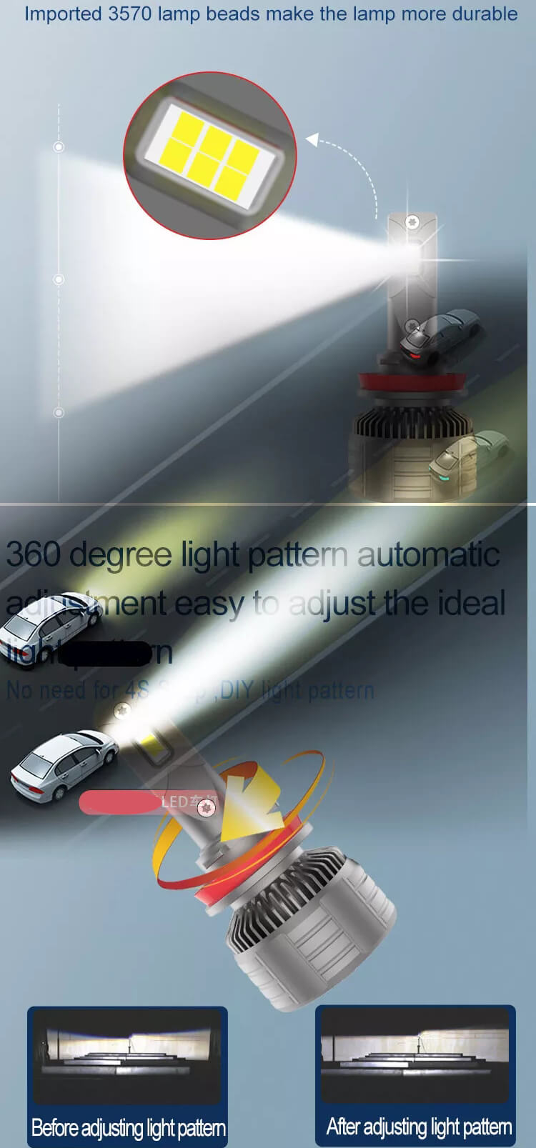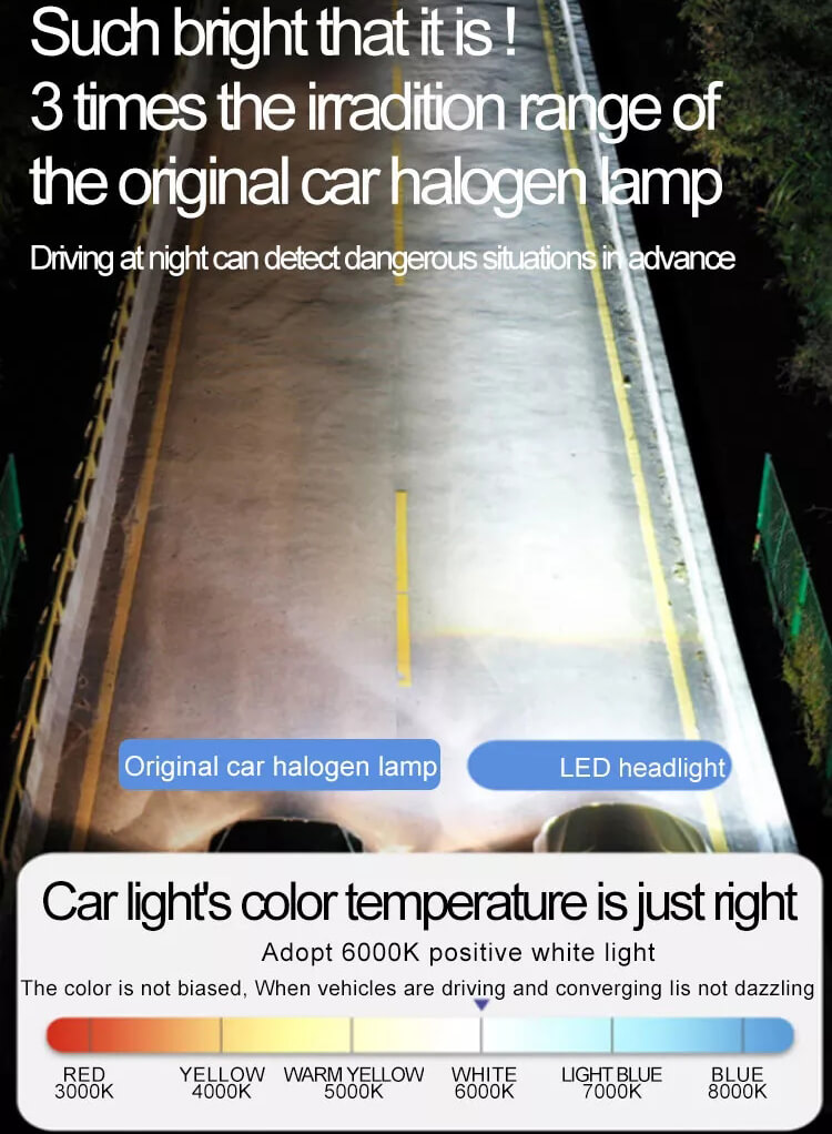 SKP5 9005 LED headlights are super bright bulbs for cars that produce 16000 lumens output. You will have a clear vision of the road with their high output.
