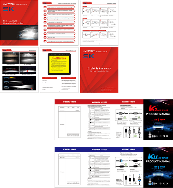 Depending on the country and location of your customers, SKLED offers product instructions with custom design, language, and printed character to guide your customers in the usage, installation maintenance of the headlights.